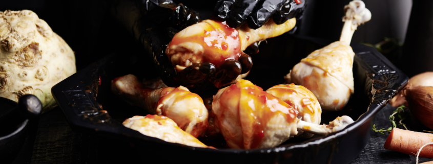 Geräuchertes Hühnchen / Gemüsespieße / Knusprige Quetschkartoffeln mit Salbeibutter